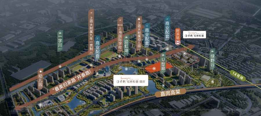 对于追求品质的改善型购房者,江桥的宜居属性持续升级。上师大附属九年一贯制学校等优质教育资源落地,南北两侧各规划了迎虹湖、绿野谷两大生态配套,商业配套也很完善。